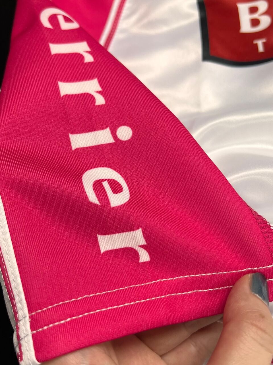 サイドのロゴ部分はスパンデックス素材となっておりますので、動きやすくなっております。