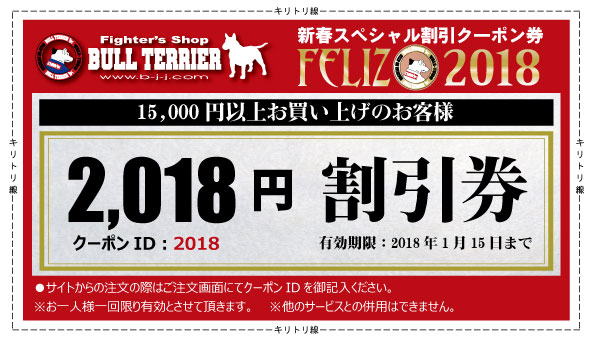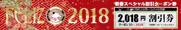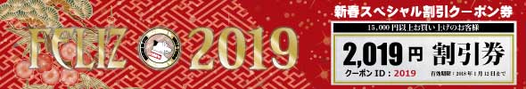 新年のお祝いに15,000円以上のご購入で使える2,019円分の割引きクーポンを発行させて頂きました。