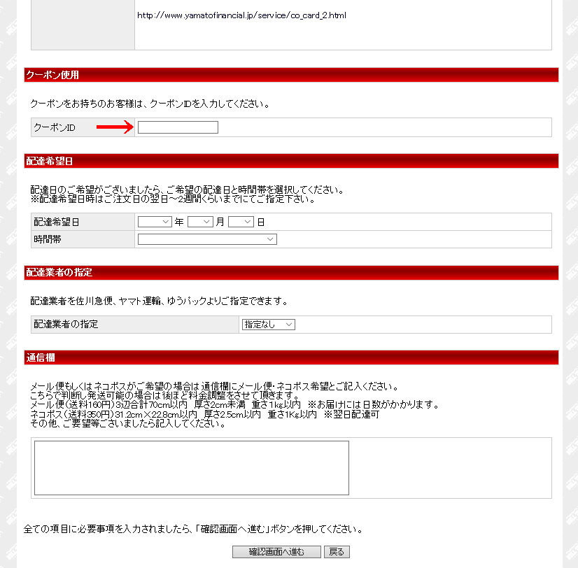 インターネットでのご利用の場合は、ご注文の際、上記クーポンIDをご注文画面のクーポン使用欄にご記入下さい。